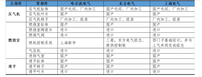 目前,中国国内重型燃气轮机主机制造企业,主要以上海电气、东方电气、哈尔滨电气等几家合资合作企业为主,上述国内燃机制造商大都只拥有部分(冷端部件和整机组装)制造技术,尚没有完全独立自主的核心研发能力,并没有形成完整的自主可控的重型燃气轮机产业体系。