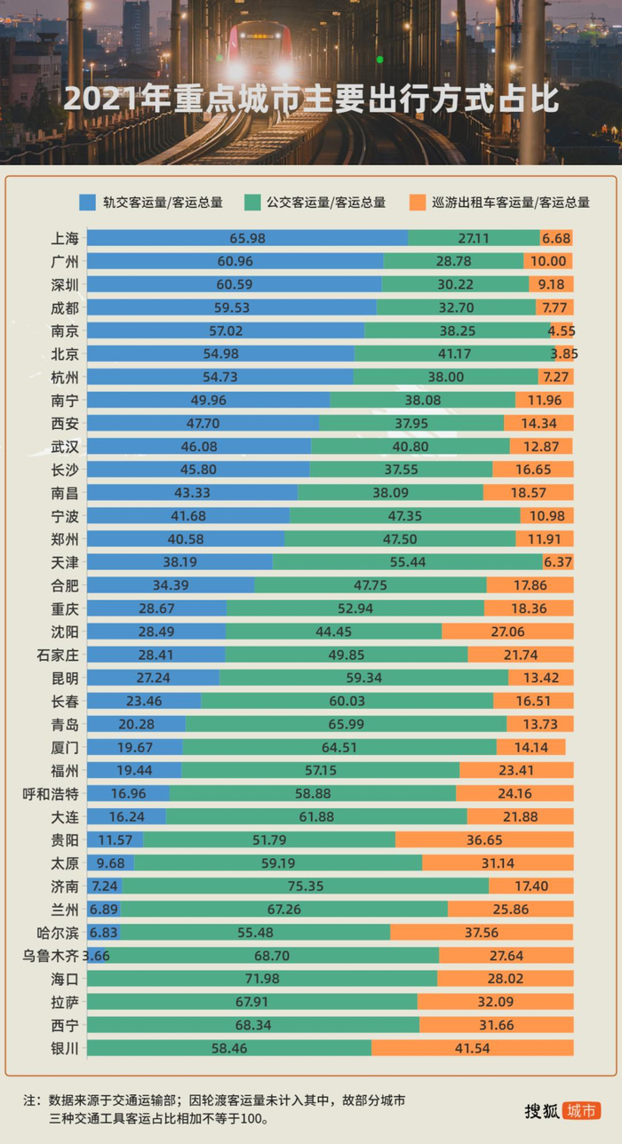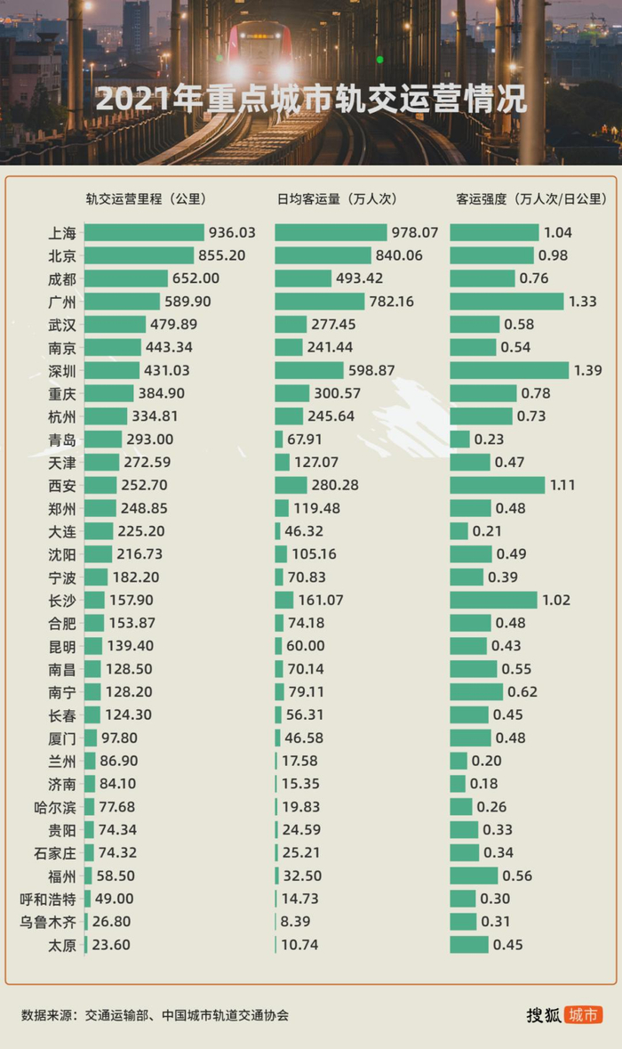 2021中心城市客运量:北京重回榜首,深圳广州地铁最挤