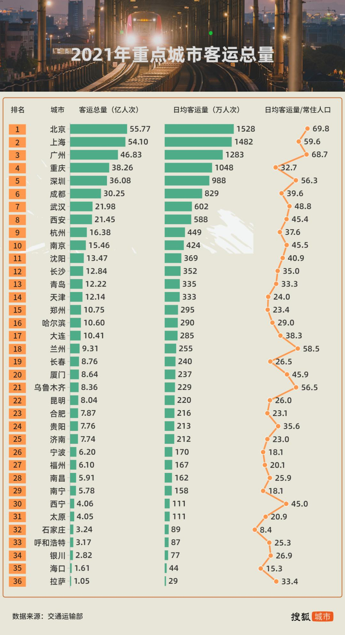 原标题:《2021中心城市客运量:北京超上海重回榜首 深圳广州地铁最挤》