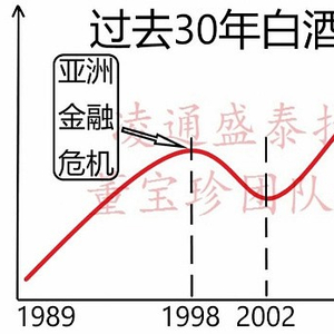 1989年白酒的周期有一个很短的下行,之后开始进入上升周期。该上升周期延续到1998年亚洲金融危机,在亚洲金融危机的冲击下,进入了下降的调整期,调整期从1998年开始一直延续到2002年前后。