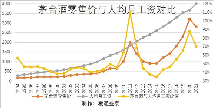我在《茅台大博弈》中总结出,茅台酒的合理价格应该在城镇人均月工资收入的1/3~1/2之间波动,超过1/2就会因高估而出现拐点,现在茅台酒最高的时候曾经达到3500元,3500元已经大幅超过人均月工资收入的1/2,所以它的向下拐点已经不能避免,且已经出现!在价格拐点显然可见的情况下,库存周期这个暗中形成的存在,我们是怎么判断它已经严重化了呢?库存是暗中形成的,因为它是暗中形成的,不好看的很清楚,但是可以通过逻辑关系来推算库存,库存所以出现是因为出现了价格快速上涨,只要价格快速上涨,库存就同步倍增,于是观察价格,就自然的从逻辑上推断出库存,当茅台酒的价格从1000多块钱在三四年内飙升到3500的时候,这个过程中渠道一定是越来越囤积的,开瓶率一定是越来越少,囤积率一定是越来越高的。白酒渠道库存已经到了无以复加的程度的一个直接的证据,是2019年的茅台酒价格不比新酒贵。