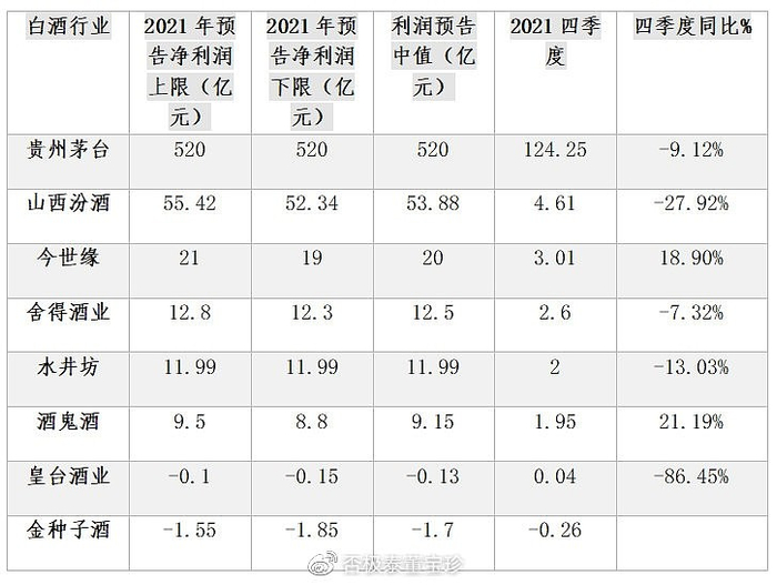 事实上拐点已经发生,下面的图是2021年四季度已经发布业绩预告的白酒企业的四季度增速:
