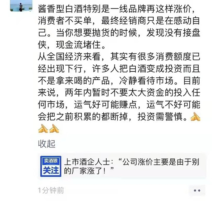 为什么白酒厂大规模提价,就会出现高位向低位的拐点?我后面做解释。