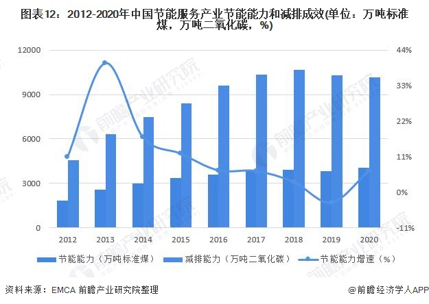 近年来,中国节能服务产业节能能力整体呈上升趋势,2020年,我国合同能源管理项目投资对应形成年节能能力4050万吨标准煤,形成年减排二氧化碳10172万吨。