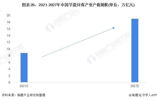 在“碳中和、碳达峰”和“十四五”的一系列目标和规划的推动下,我国节能环保产业规模将继续扩大。据前瞻分析预测,到2027年我国节能环保产业产值规模有望超19万亿元。