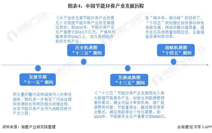 我国节能环保产业发展主要受政策影响,在经历了发展早期(“十一五”期间)、历史机遇期(“十二五”期间)和发展成熟期(“十三五”期间)后,“十四五”期间,节能环保产业正处于新的战略机遇期。