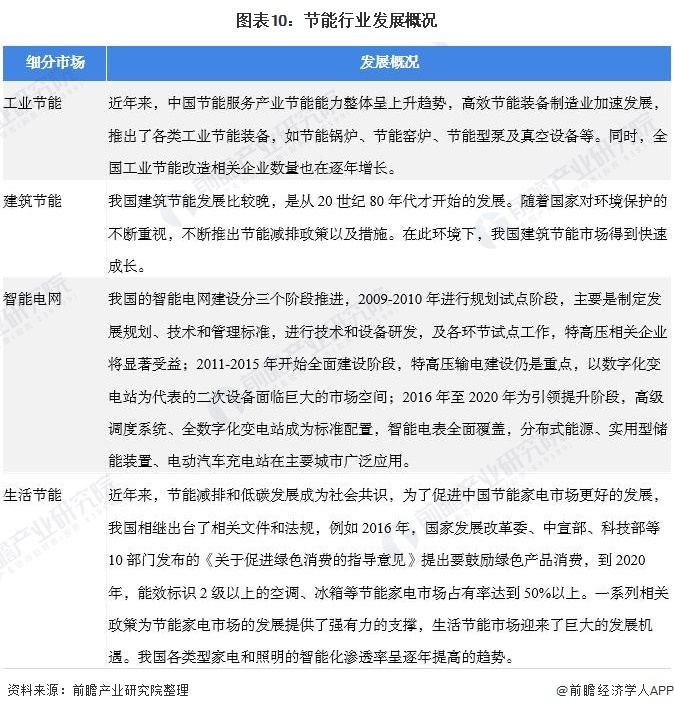 节能行业是节能环保产业的重要细分行业,主要包括工业节能、建筑节能、智能电网和生活节能四个领域,具体发展概况如下: