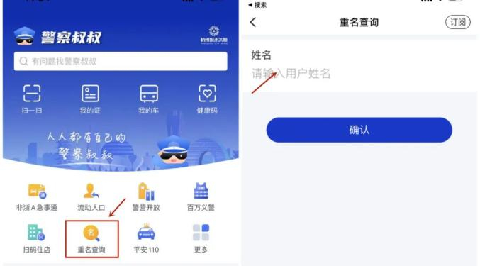 或者通过“警察叔叔APP”查找,登录APP后点击“重名查询”,输入需要查询的名字,就可以看到重名的数字了。