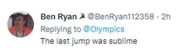 在被国际奥委会这条推文称赞的最后一跳中,谷爱凌完成空中转体1620高难度动作。也有一些外国网友为这一跳点赞。↓