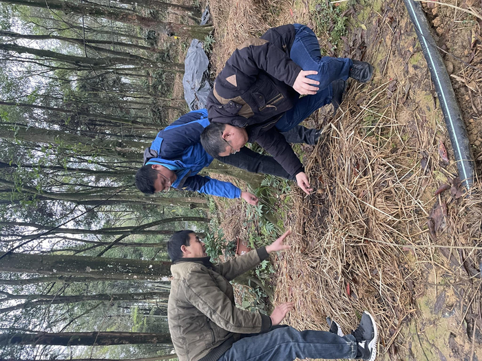 2月7日,江西省井冈山市长坪林场科技特派员江保东下到长古岭仿野生种植七叶一枝花基地查看萌芽情况,指导施行防冻措施。