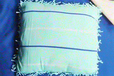然后将衣物四边剪成流苏状,一定要注意枕芯在衣物上的尺寸哦!