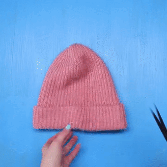 第一步:把帽顶部分剪掉,可根据宠物的颈围,确定下剪刀的位置,然后在两边适当位置,裁剪对称缺口。