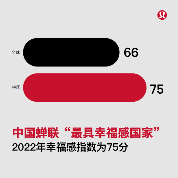 近日,据lululemon发布的《全球幸福感报告》显示,2022年全球幸福感指数较去年有所上升,其中,中国人的幸福感指数在10个受访国家中排名第一,中国也因此成为 “最具幸福感国家” 。后疫情时代,“走进户外” 和 “积极运动” 是最受欢迎的提升幸福感方式。