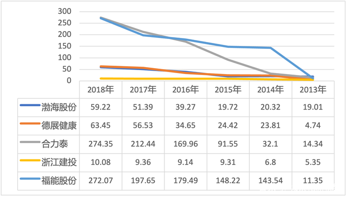 图3 2013-2018年5家样本借壳公司资产总额