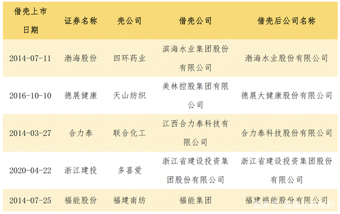 据不完全统计,因借壳上市样本量较小,现选取2014年至2020年城投系公司借壳上市的5个案例为本节样本分析。