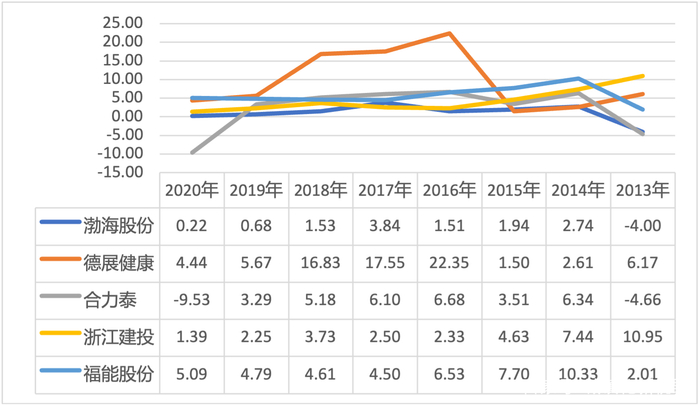 图2 2013-2020年5家样本借壳公司总资产净利率