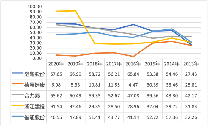 图1 2013-2020年5家样本借壳公司资产负债率