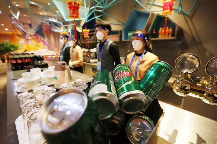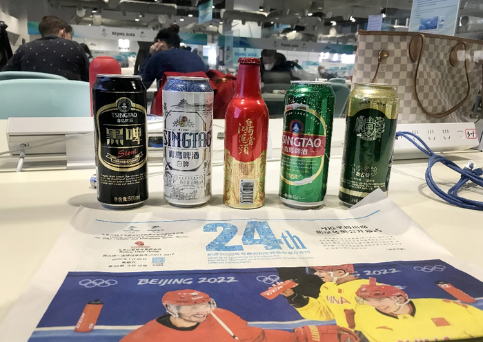 △北京冬奥会主媒体中心内的青岛啤酒产品