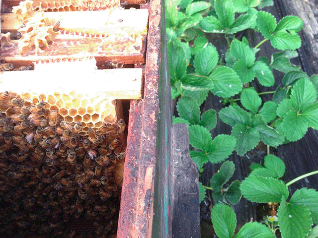 所以,在草莓果园内就设有蜂箱,花开时方便蜜蜂传播花粉,为结下甜美的果实做好铺垫。