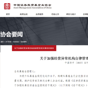 协会表示,私募基金管理人存在多类经营异常机构情形的,协会将视情节从严处理。