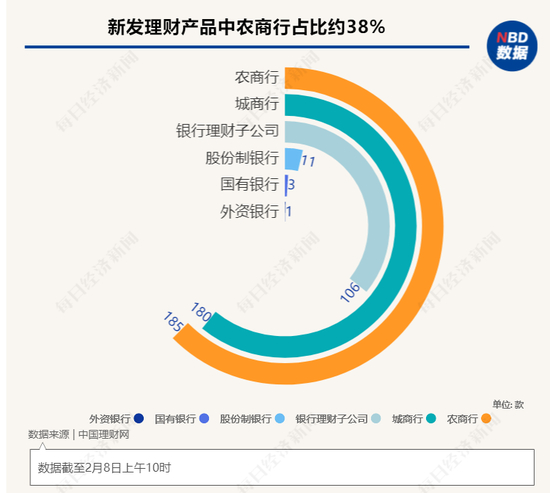 记者根据中国理财网数据,截至2月8日上午10时,各银行机构和理财子公司新发理财产品(即在售产品)486款。
