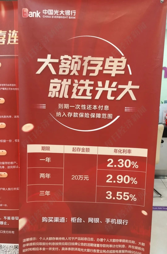 “三年期的利率比较高,不一定有额度的。”这位理财经理告诉记者,“之前有50万起给到3.55%的利率,但这笔资金需要是客户从其他银行转进来的,而且额度也很紧张,现在应该没了。”