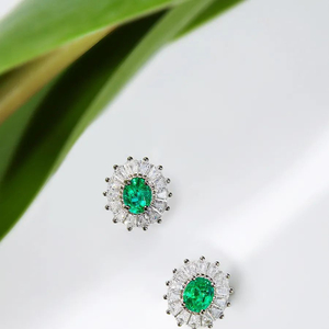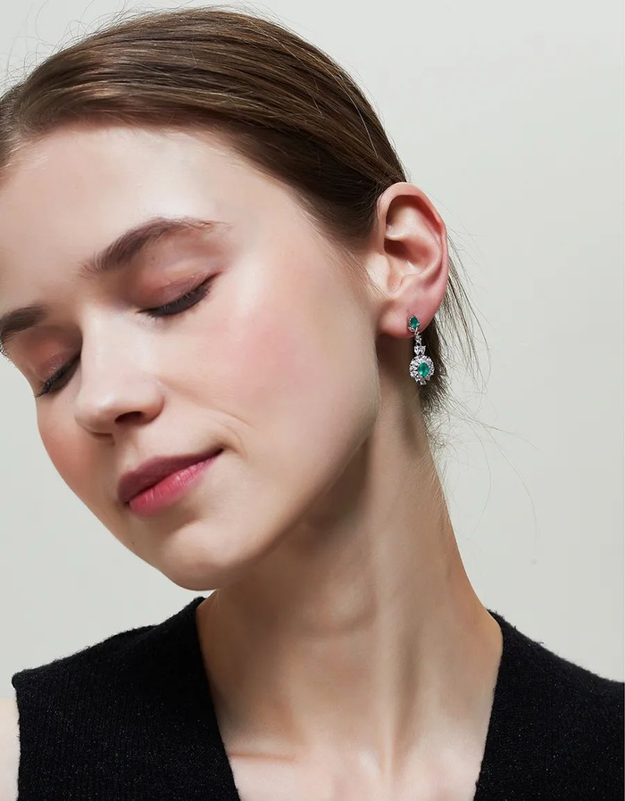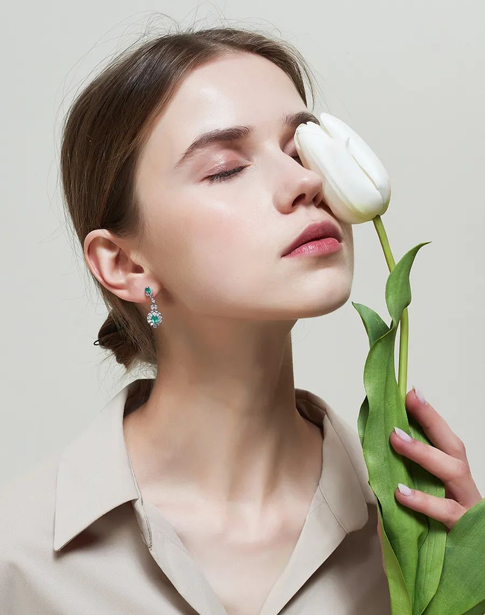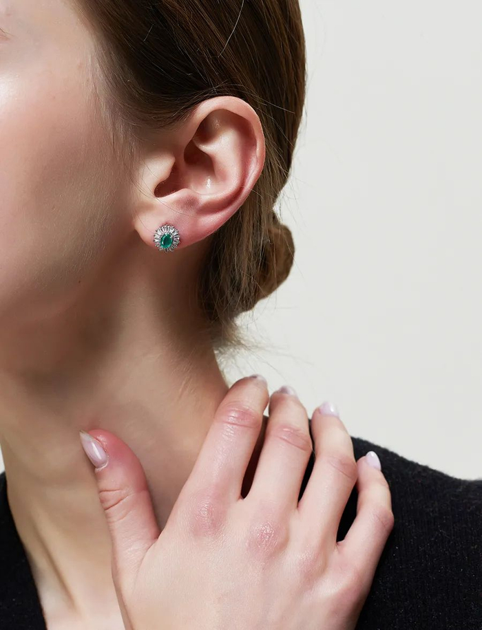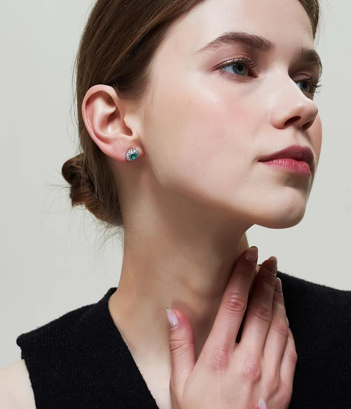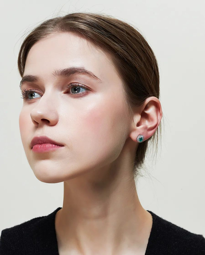 小而美的一款耳钉,精致耐看,祖母绿的独特颜色,又为它增加了不可忽视的美丽氛围。