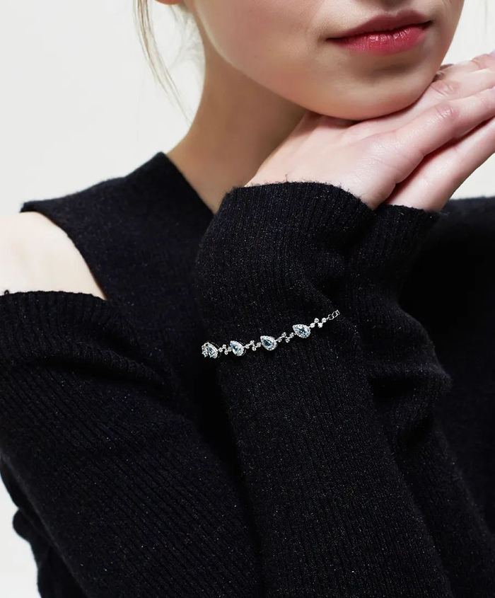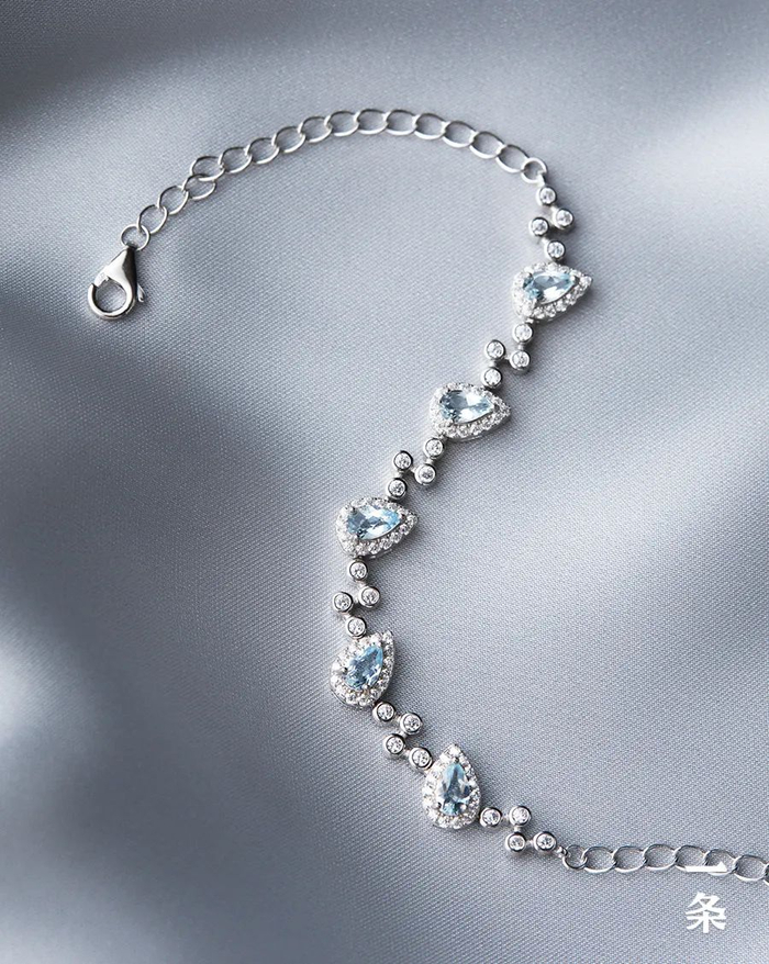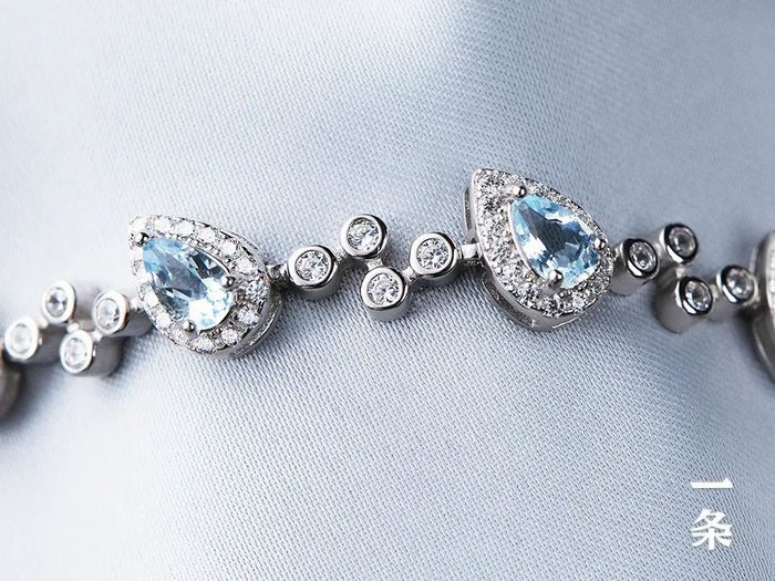 这是一款华贵感和清新气质并重的手链,一圈海蓝宝的晶莹闪烁,太美了。