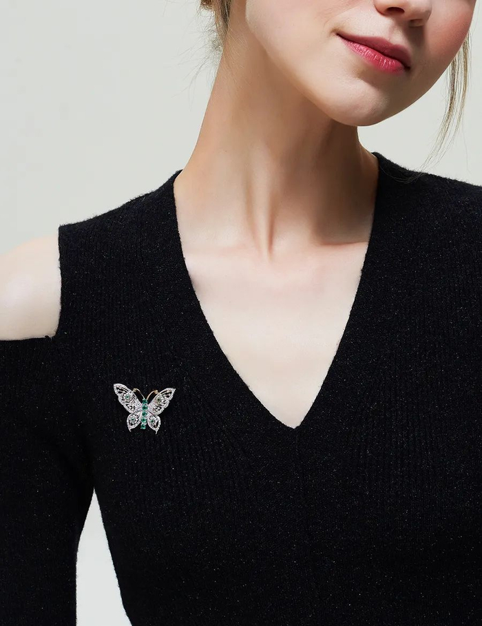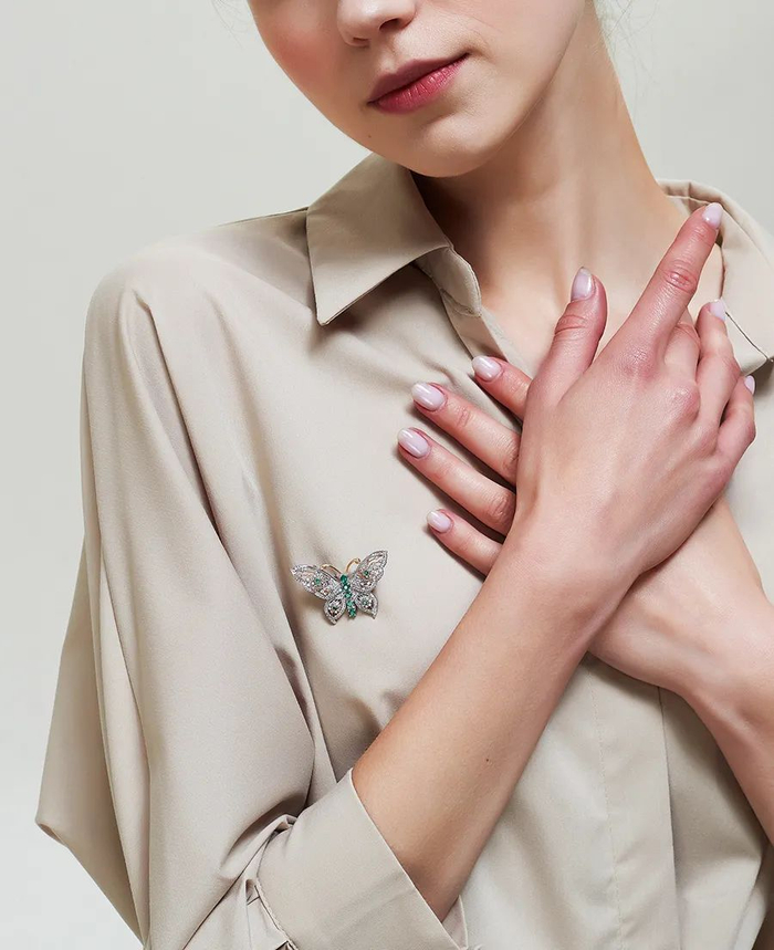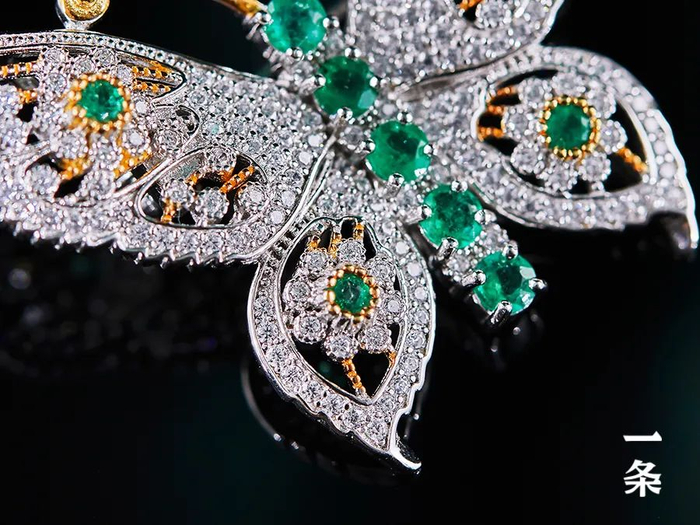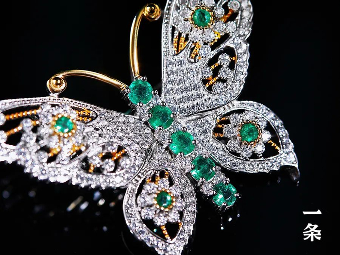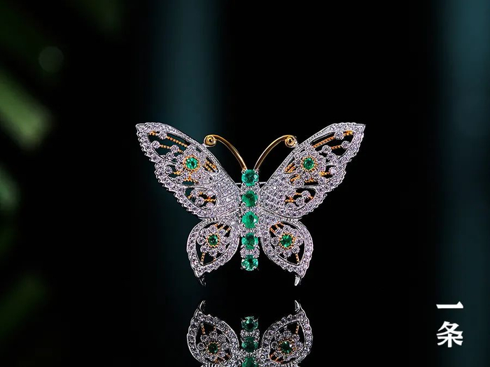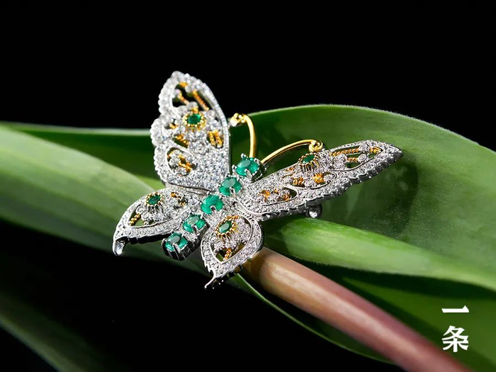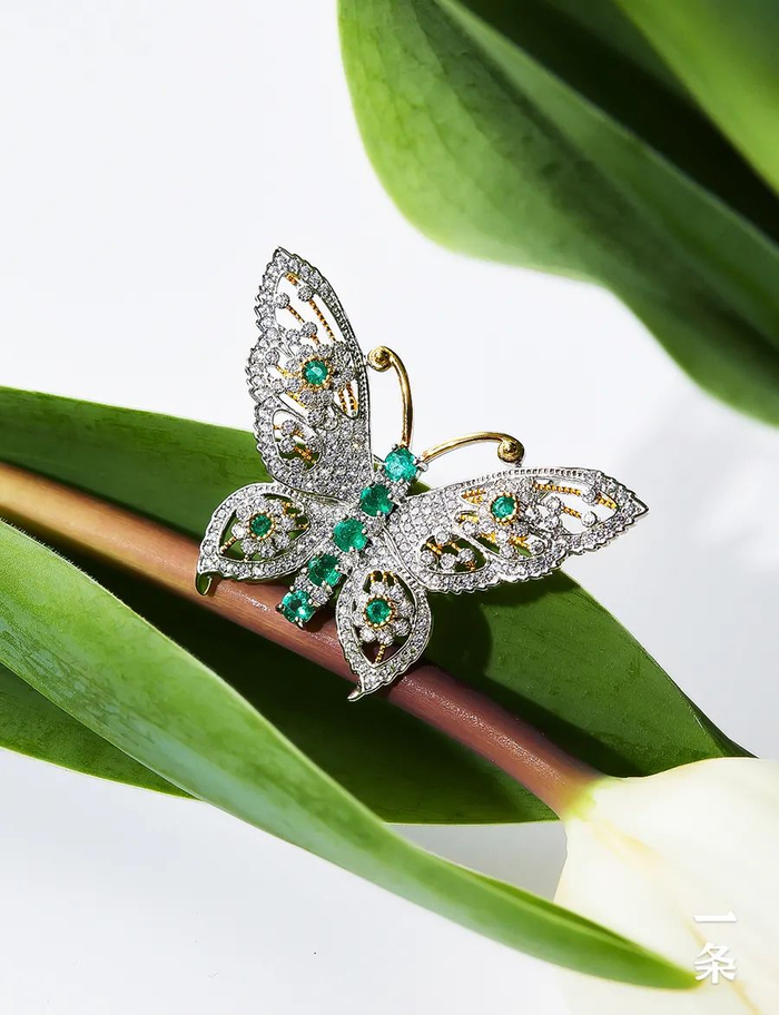 蝴蝶祖母绿胸针,现一条生活馆有售▼