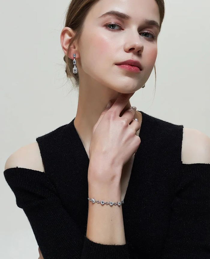 中间又有小颗的白锆石错落间隔,带来落花一般的浪漫气息。