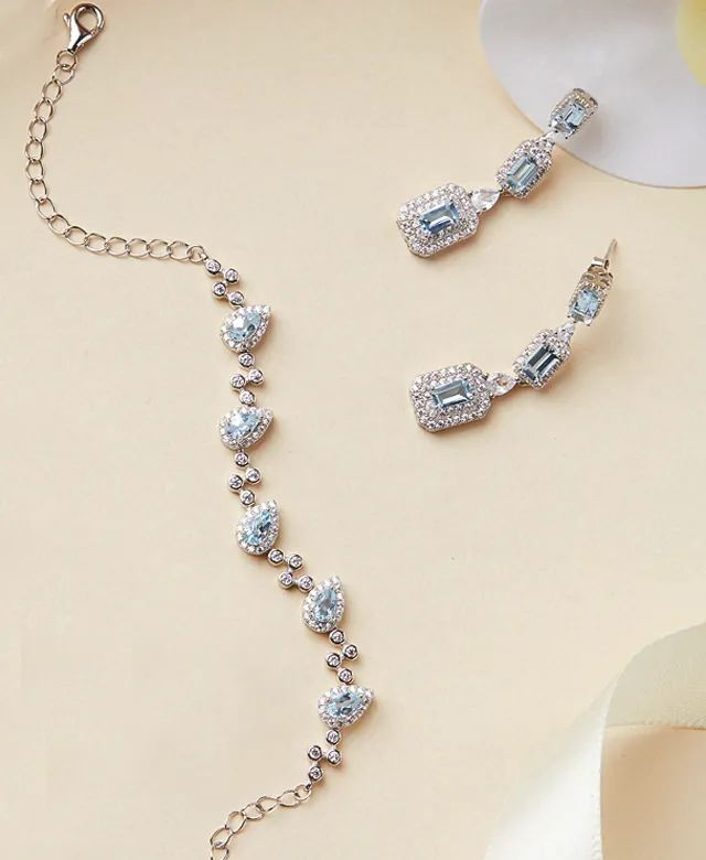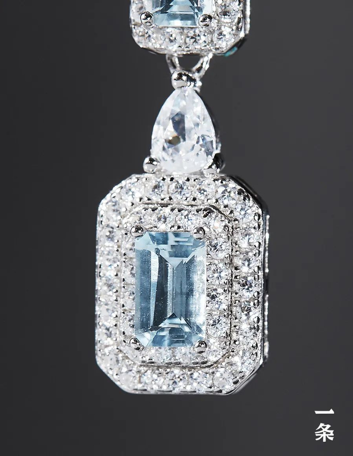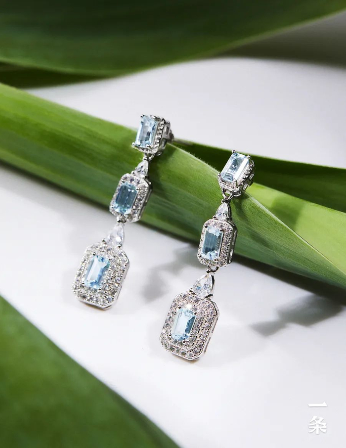 海蓝宝水滴各自被一圈白锆石包围,显得更为璀璨。