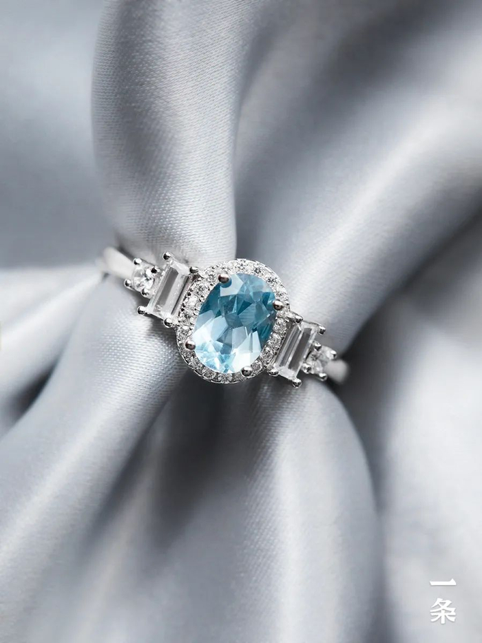 精致的宝石切割工艺,让戒面的每个刻面都能折射光芒,如晴天下波光粼粼的海面。