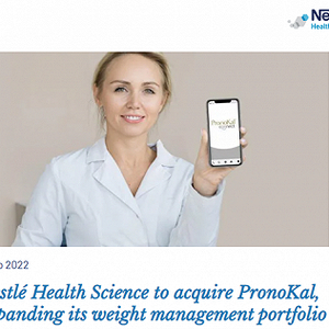小食代留意到,昨日,雀巢健康科学宣布收购减肥和体重管理服务提供商PronoKal。就在几天前,该公司才宣布同意收购植基营养品公司Orgain(中文名:傲感)多数股权,并拥有在2024年全资收购的选择权。