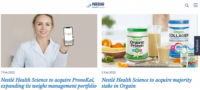 随着疫情后人们更为注重健康,加之自身需要重塑产品组合以谋求高增长,雀巢近年在相关领域密集出手收购,急速壮大旗下雀巢健康科学版图。