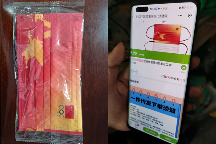 案例六、2021年8月17日,宁波市宁海县市场监管局在日常监督检查中发现宁海县筋斗云水果店正在销售右上角印有“中华人民共和国国旗和奥运五环图案”的口罩,违法经营额3355.8元。立案调查后依法对当事人处以1万元的罚款,并没收现场扣押的口罩。