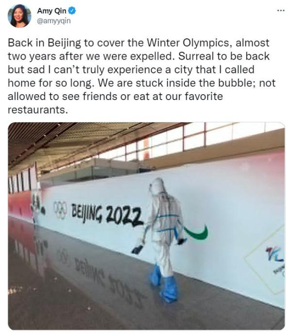 在抵达北京的第一时间,她曾在推特上抱怨称,自己离开北京近两年后,回来参加冬奥会的报道,却因为奥运闭环管理,自己不能像在疫情前那样自由走动、看望朋友或下馆子吃饭。