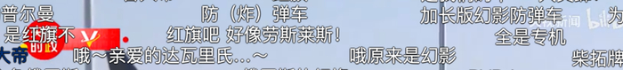 弹幕除了满屏的“乌拉”,就是对普京自带的座驾的好奇。有说是红旗的,有说是奔驰普尔曼,还有说是劳斯莱斯幻影的,完美避开正确答案。