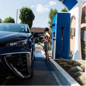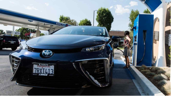 一辆丰田Mirai在加利福尼亚州拉加拿大的一个加氢站加氢。图片来源于:the National Renewable Energy Lab