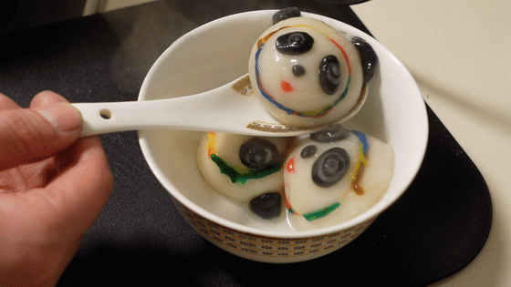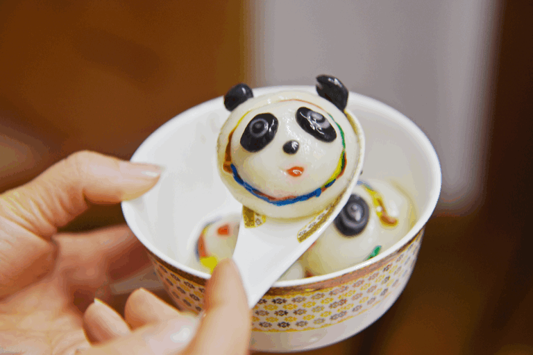 经过一遍遍尝试,孩子们手中的“冰墩墩”变得愈发有模有样。再经过沸水的“洗礼”,可可爱爱的“冰墩墩”汤圆就出锅啦~