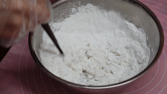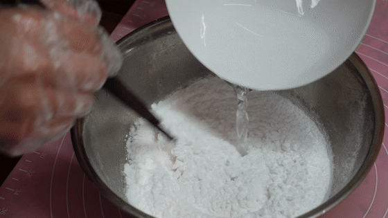 制作环节中,最难的还属在汤圆上呈现“冰墩墩”的脸部、四肢等部分。“‘冰墩墩’的手、耳朵、眼睛需要在面粉里加入食用色素后,揉搓成点、条、线,再黏上去精修。”陈利介绍说,“‘冰墩墩’的眼睛,还需要叠加三层大小不一的面团,才会有水汪汪的效果。”