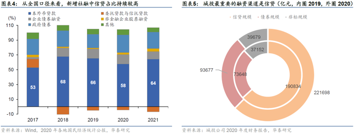 信贷在金融体系和城投融资中处于核心地位,我们以区域存贷款数据为依据,判断各个地级行政区的金融资源丰富度。我国社融的主体是信贷,2017年至今,信贷在新增社融中占比平均超过60%,而地级行政区融资渠道多较为有限,通过债券、股票、政府债券融资的能力有限,信贷重要性更高。尤其是对于中西部地级区域,信贷是最重要的金融资源。城投最主要的融资渠道也是信贷,截至2020年年底,城投信贷规模22.2万亿元,在全部有息债务中占比高达62.4%。随着2022年城投债券融资进一步收紧,债券募资用途受到更严厉管控,非标监管无放松趋势,信贷对于城投融资的重要性将进一步增加。