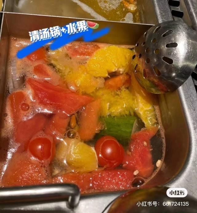 俨然一副把火锅当成家里的灶,做出一桌年夜饭的架势,而原料自然是来自免费的小料和赠送的水果菜品。
