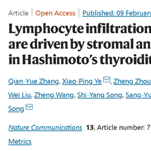 美国东部时间2月9日5点,《自然》子刊《自然通讯》发表上海交通大学医学院附属第九人民医院宋怀东教授团队的研究论文,该研究揭示了长期困扰人们的桥本甲状腺炎患者淋巴细胞异位浸润到甲状腺组织,导致甲状腺滤泡细胞破坏的分子机制,为开发减少淋巴细胞浸润、阻止甲状腺细胞破坏,延缓临床或亚临床甲减的发生提供了新的思路。