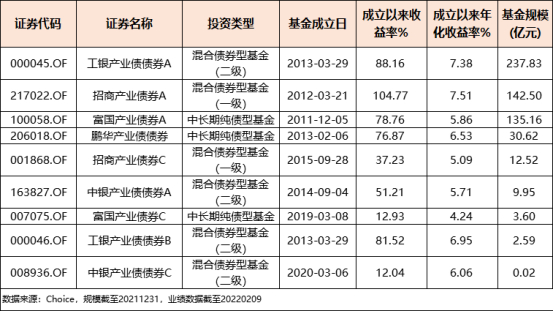 统计全市场名称中带有“产业债”的基金,招商产业债券、富国产业债券是少有规模过百亿的,2只基金成立至今的时间都很久,穿越牛熊。