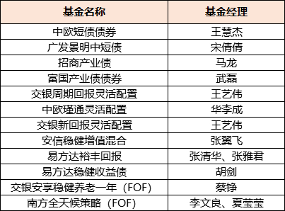 雪球社区根据球友讨论热度选出了12只产品,涵盖中短债、股债19/低波动、股债28和固收+FOF(如下)。