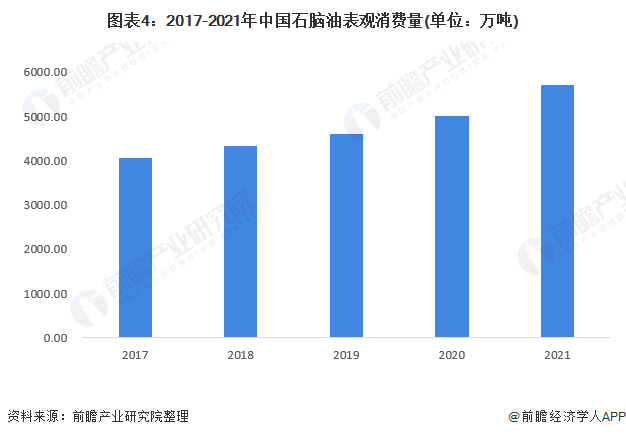 4、石脑油表观需求量逐年上升