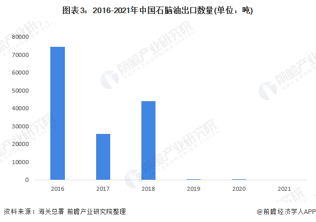 我国石脑油出口量呈波动下跌趋势,特别是近几年来,在国家对出口退税政策不断调整下,近两年石脑油出口大幅下降,出口量自2019年起几乎为零。2018年,我国石脑油出口4.39万吨,随后2019年仅1.9吨,出口量腰斩。截至2021年底,我国暂无石脑油出口。
