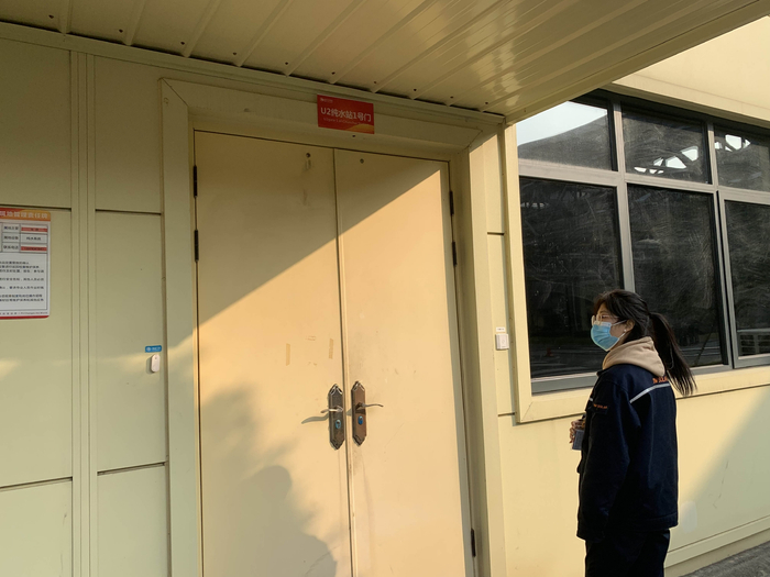 杨梦在日常工作的纯水站门口 摄影:马悦然