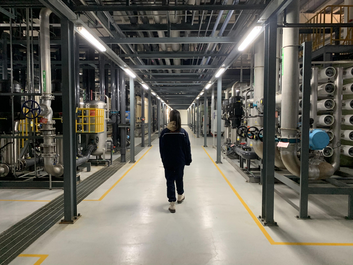 在这座“超级光伏电池工厂”里,每天约有2000多人工作。与生产线上的工人不同,杨梦的工种是工厂环境监测和水处理,属于厂务部的技术部门。厂务部为工厂的辅助生产部门,负责车间用的水、电、气等。