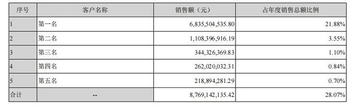 2020年,金螳螂面向前五大客户的销售金额为87.69亿元,占年度销售总额的比例高达28.07%。